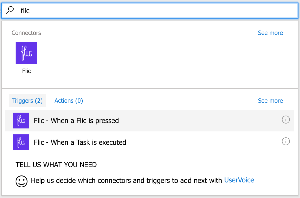 Ok, now that the Flic button is set up we can move on to building our Flow. First thing we need to do is create a Blank Flow and search for Flic in the Triggers. We will use the "when a Flic is pressed" Trigger.