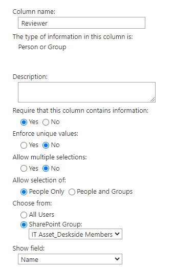 Whenever I go into the field in SharePoint and set the limit to our SharePoint Group members in the List Settings, the dropdown does not show any results.