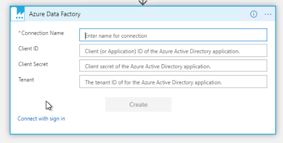 we are trying to add an Azure Data Factory connection to Power App via Flow.