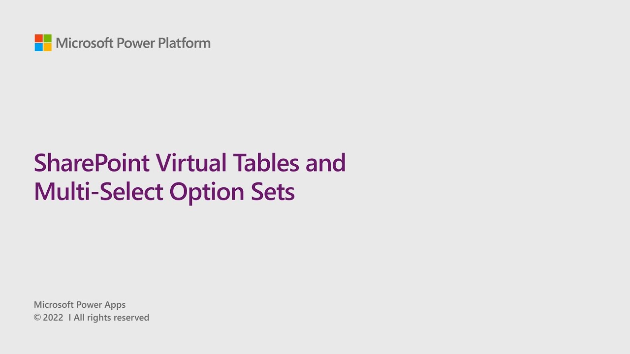 This video announces the improvements to SharePoint Virtual tables to allow the usage of multi-select option sets.#microsoft #sharepoint #virtualtables