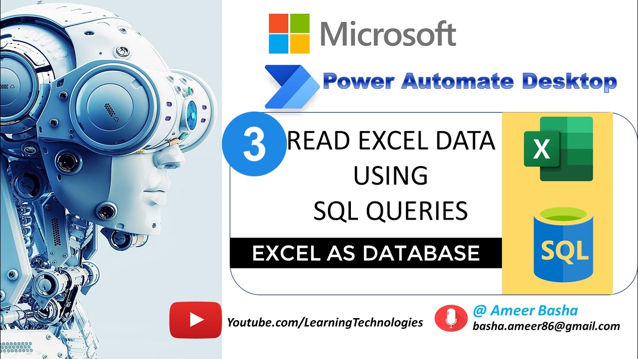 Power Automate Desktop #203 || How to Read Excel Data Using SQL Queries (Excel as database)https://youtu.be/IjdkUUylOm0
