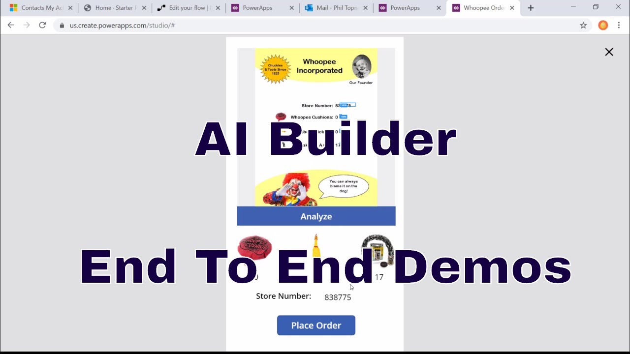 We are the CEOs of "Whoopee Incorporated" a business focusing in fine products like whoopee cushions, rubber chickens and snakes in a can. We use all parts of AI builder to optimize our business through: inventory scanning, order form processing, forecasting order fulfillment and more.