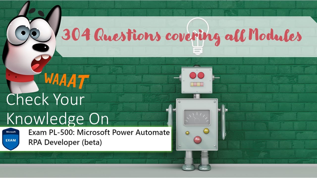 This video contains 304 questions that help you learn interesting facts about being RPA Developer and is relevant for the preparation of Exam PL-500: Microsoft Power Automate RPA Developer PL500. The questions are based on the learning course offered by Microsoft for the preparation of PL500. The questions are made by our team after going through individual module of the course. We tried to make questions and include explanation and illustrations from the course.
