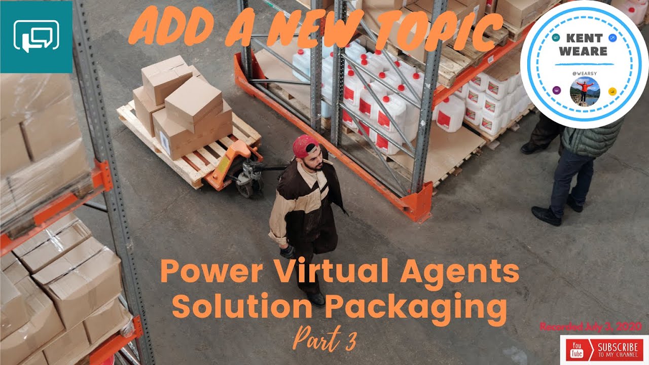 Part 1: 029 - Power Virtual Agents Solution Packaging https://youtu.be/SuvBBIfVUf8