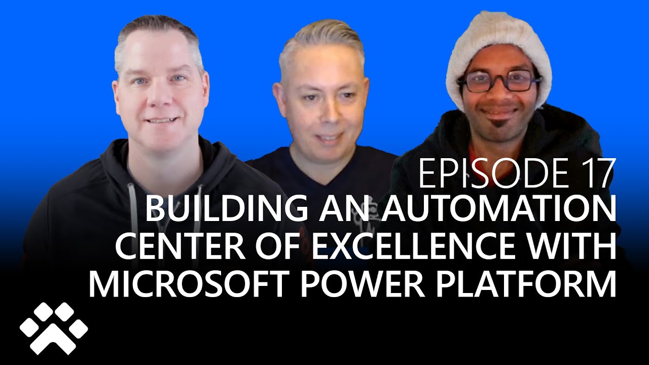 This episode covers the Automation CoE Blueprint which customers can use to setup an automation program (RPA and other hyperautomation scenarios) in their organization and a limited private preview of Automation CoE Starter Kit, which is an implementation of our best practices (HEAT) that can be customized by organizations for their own needs.
