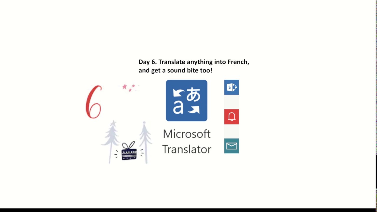 In the sixth day of the 25 days of flows, we will discuss how to create a really easy button for translating English text to French. Plus we'll use 'text to speech' to create an mp3 file for listening to, and practicing, the word we just learned! Later in this series we will use language detection services with the premium connector to do even more!