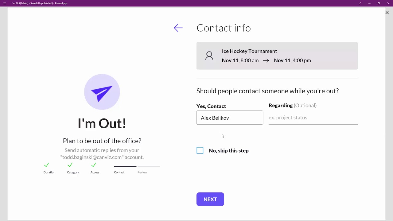 Get the Out of Office PowerApp here: https://web.powerapps.com