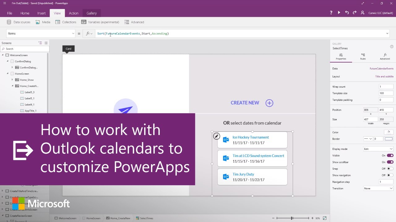 Learn how to build and customize PowerApps with this deep dive into working with Outlook calendars for the Out of Office PowerApps Template. The Out of Office app is a mobile-friendly way to quickly set your out of office message with just a few clicks. Utilizing your Office 365 data, this app lets you set your Outlook autoreplies, clear your calendar during your absence, and send a calendar invite alerting your coworkers you will be out of office.