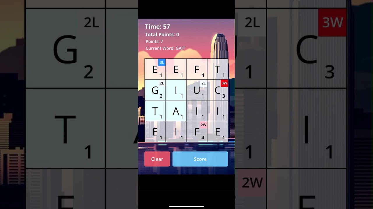 - Make a word of 3 letters or more by selecting a series of connected tiles