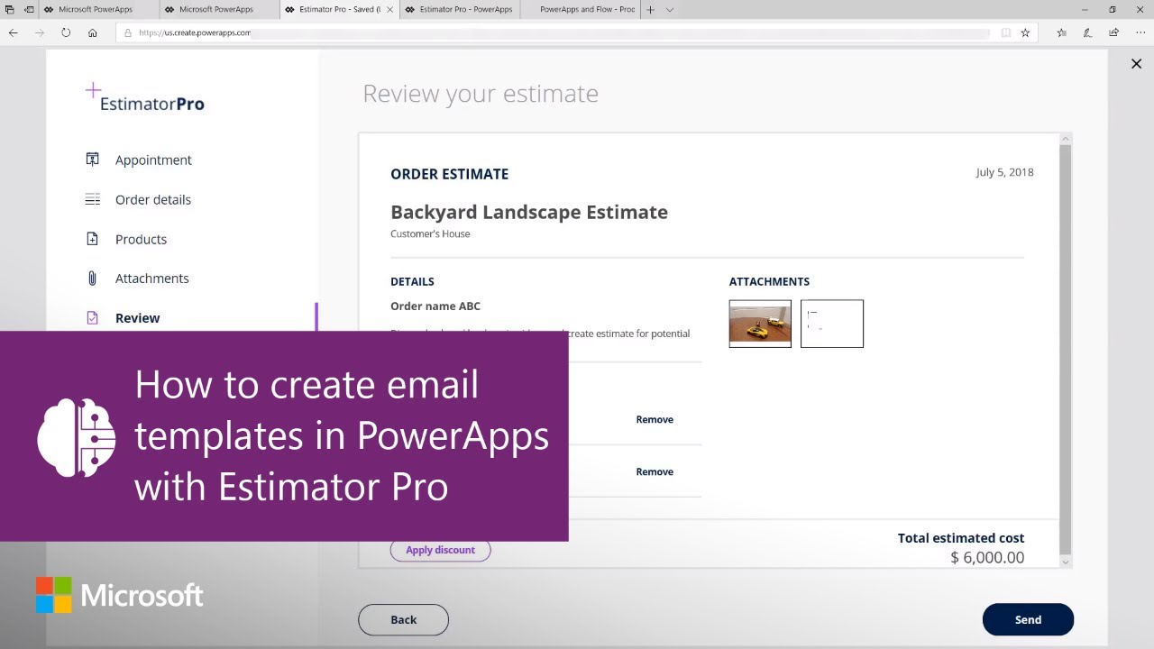 Learn how to customize Outlook by creating dynamic email templates in PowerApps with Estimator Pro. By using Estimator Pro, you can view the location and details of your customer appointments, build project estimates, and send the details to customers all within a single app.