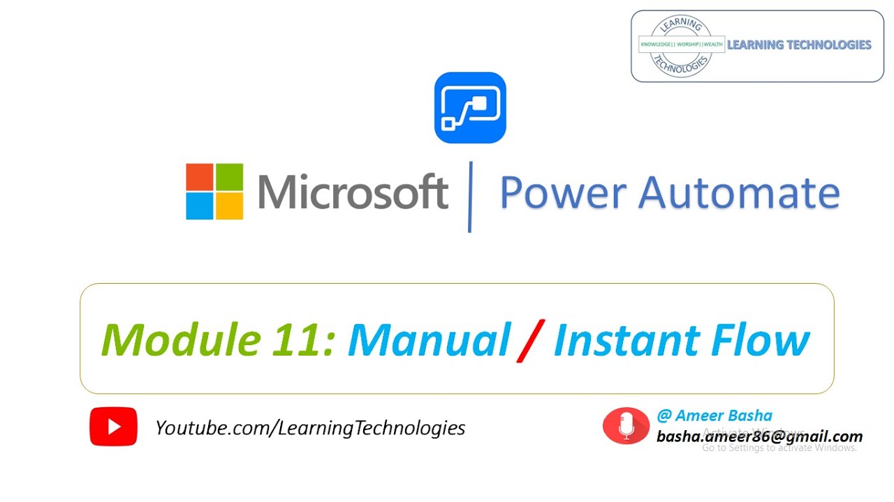 Microsoft Power Automate Tutorials || Module 11 : How to Create a Manual Flow or Instant Flow