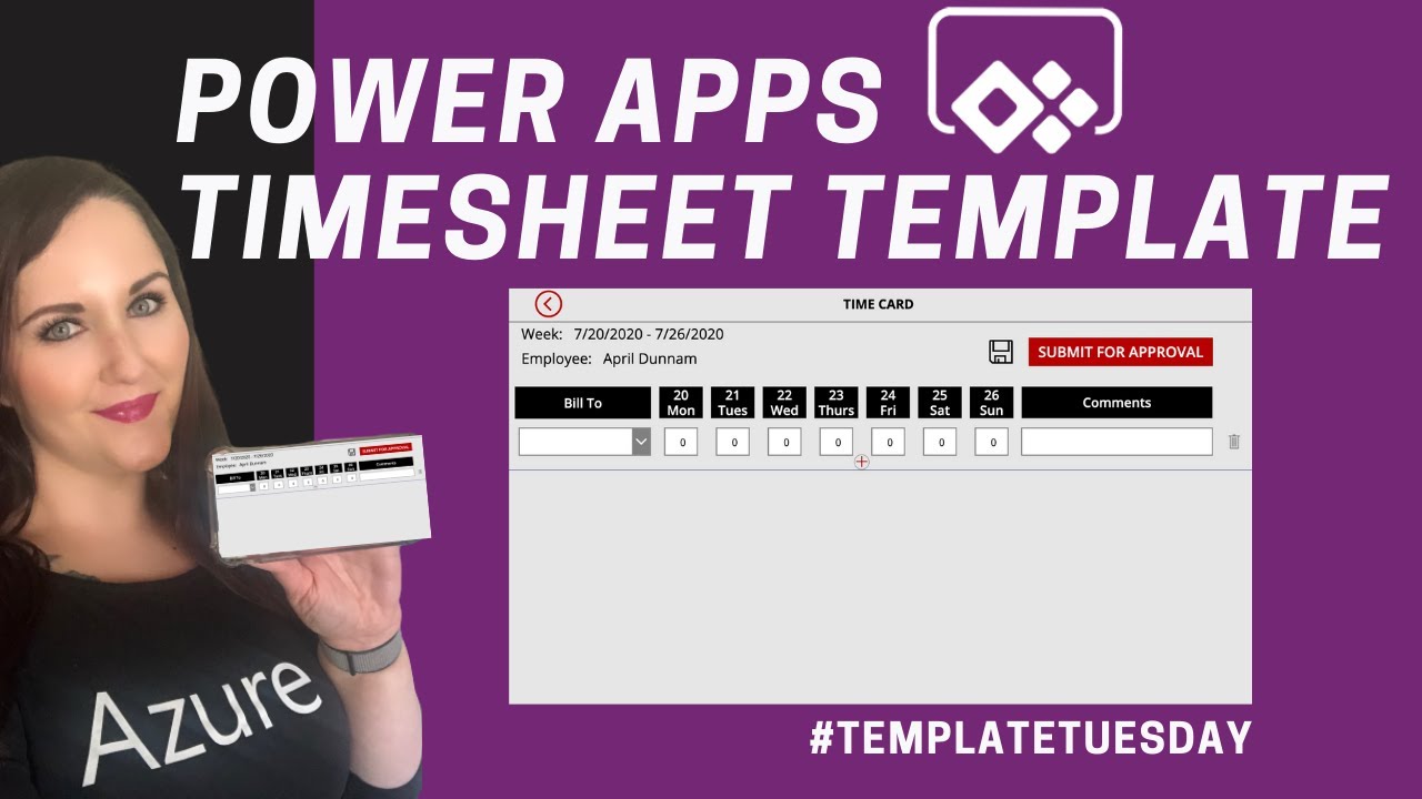 The Power Apps Template and Flow to provision the list can be found here: https://github.com/aprildunnam/PowerApps/tree/master/Timesheet