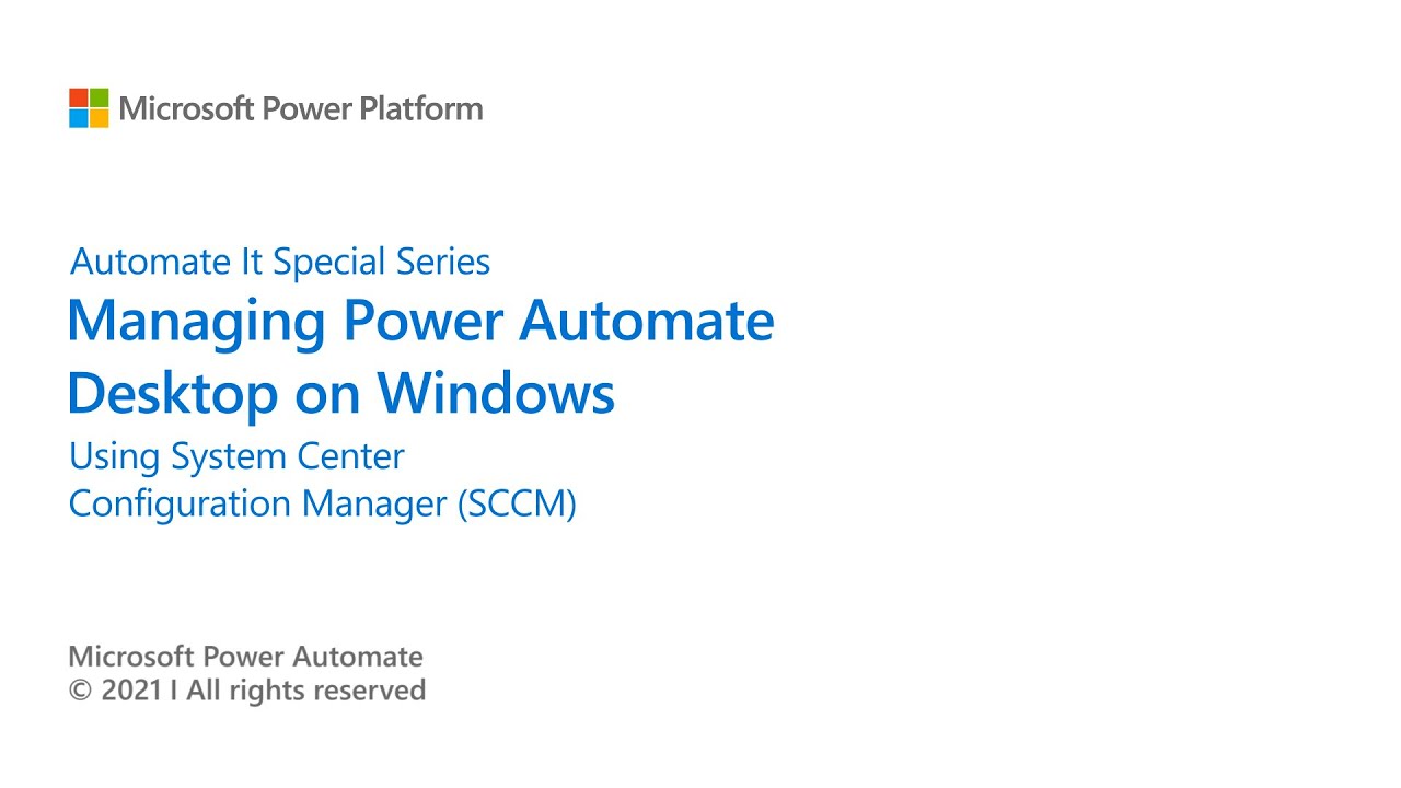 In this episode, we will show you how you can use SCCM to package Power Automate Desktop and manage it’s lifecycle (e.g. upgrade, uninstall etc) Resources : - Power Automate Desktop on Windows Whitepaper https://aka.ms/padonwindowspnp - Microsoft Endpoint Manager documentation https://docs.microsoft.com/en-us/mem/ - Microsoft Endpoint Configuration Manager documentation https://docs.microsoft.com/en-us/mem/... - Manage and protect mobile and desktop applications with Microsoft Endpoint Manager https://techcommunity.microsoft.com/t... - Governance in Power Automate Desktop https://docs.microsoft.com/en-us/powe...