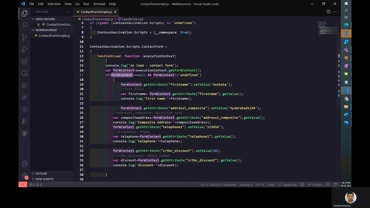 In Dynamics 365 CRM to perform customizations, web resources of type JavaScript was widely used. To set different attributes that are present in CRM Form, form context client api reference can be used. As an example, contact form and contact entity record used to set different attributes using form context.