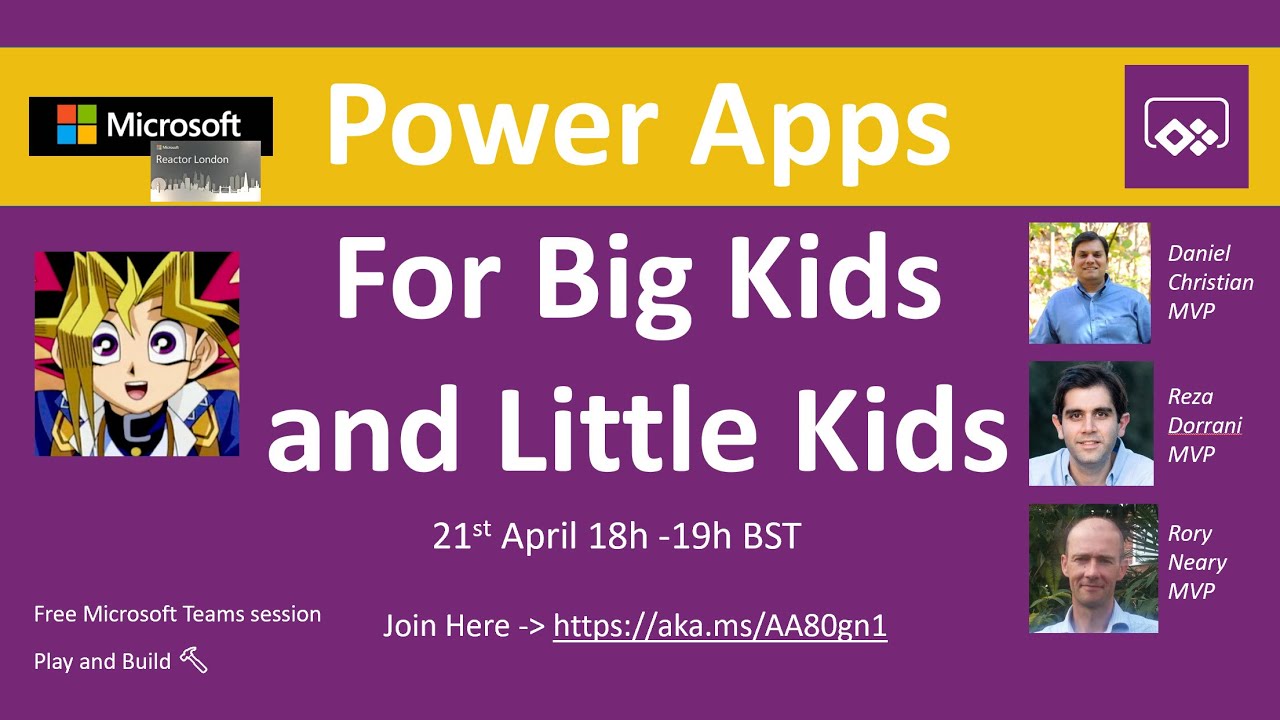 PowerApps for Big Kids 👨🚒 and Little Kids 👨👨👧 Free online session for bored kids and frustrated parents Tues 21st April 18h BST (British Summer Time)