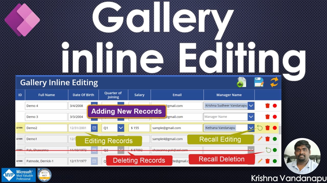 By end of this video you will learn:⚡What is gallery inline editing⚡Edit records in bulk⚡Enable row when users click on the edit icon⚡Delete records in bulk using gallery⚡Add records in bulk using gallery