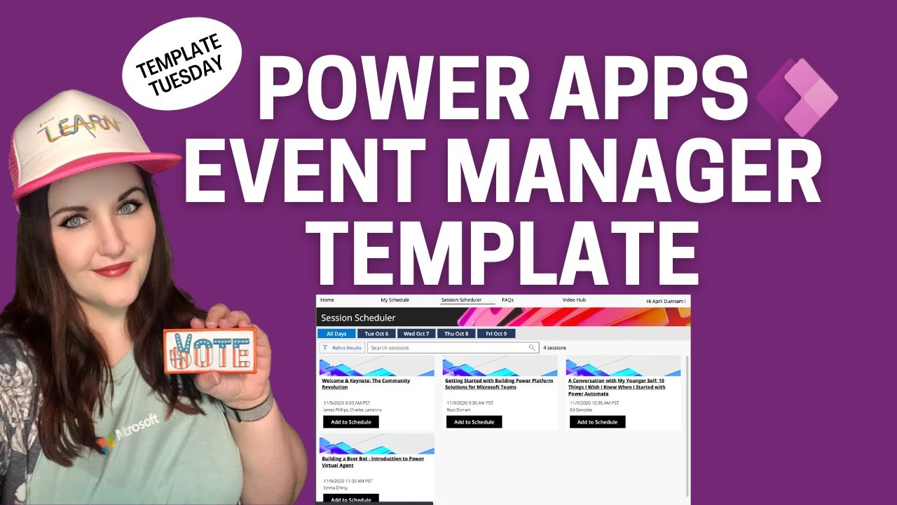 Download the template here: https://github.com/aprildunnam/PowerApps/tree/master/Conference%20Scheduler%20Template