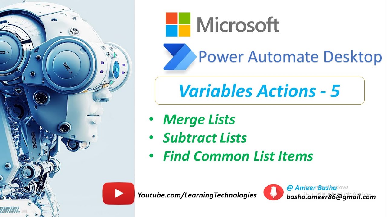 1) Merge Lists, 2) Subtract Lists, 3) Find Common List items