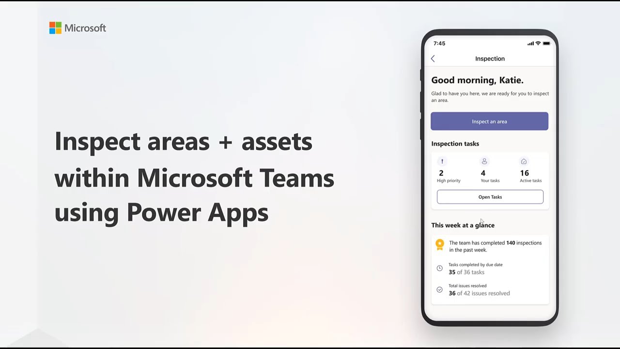 With the Inspection App in Microsoft Teams built on Project Oakdale, employees can complete inspection forms and managers can create new inspection forms and view inspection history