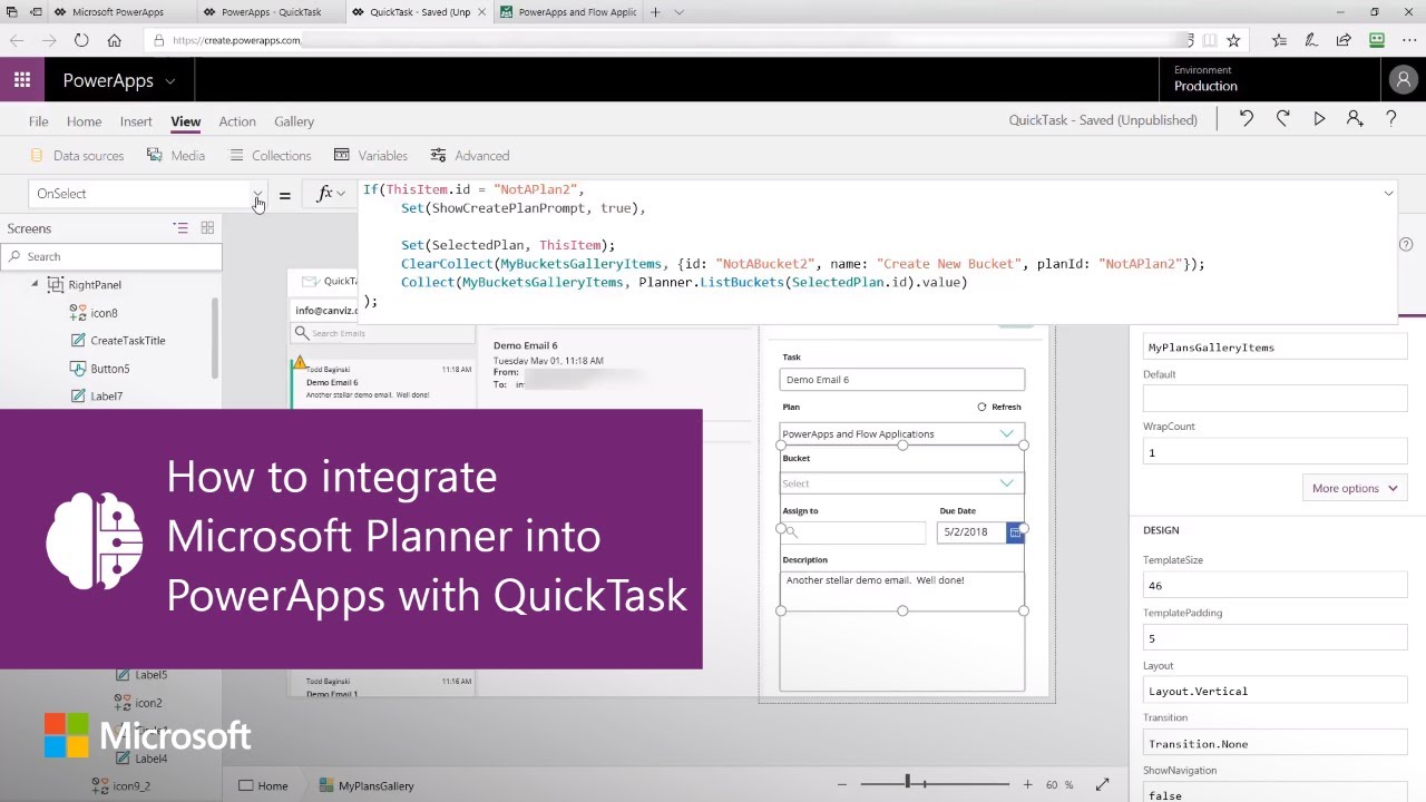 Discover how to integrate Microsoft Planner into PowerApps with the QuickTask sample template. QuickTask allows you to triage your Outlook emails quickly into plans using Microsoft Planner. By: MVP Todd Baginski