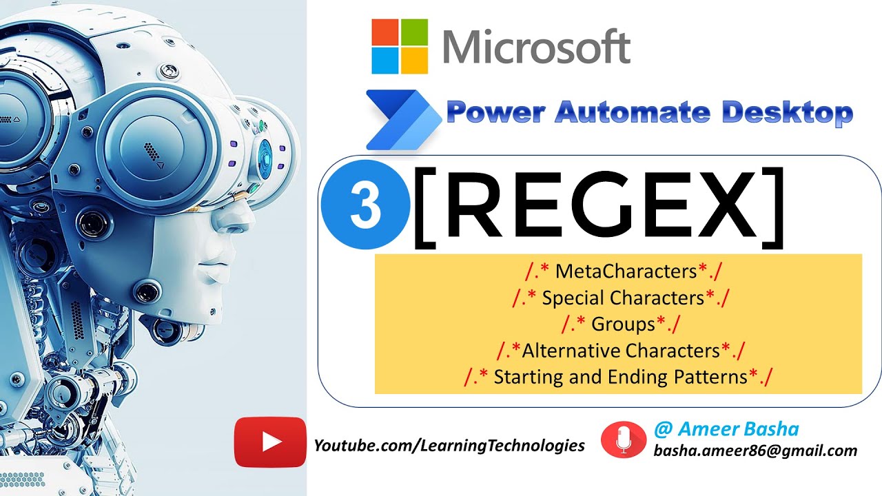 Power Automate Desktop || understanding RegEx (Metacharacters, Groups ,Starting and Ending Patterns)
