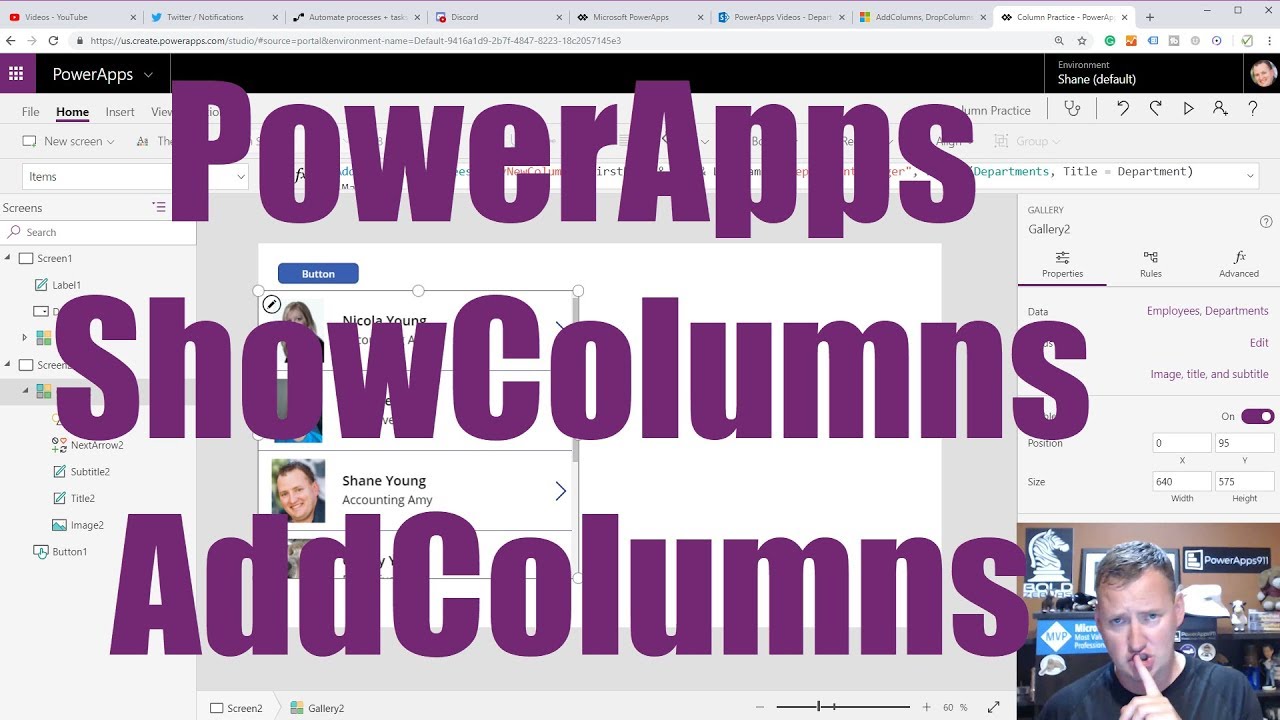 In this video, you will learn about the best functions for manipulating your data sources for drop downs and galleries. That is AddColumns, ShowColumns, RenameColumns, DropColumns, and SortByColumn. They are all great functions for dealing with data, especially when you can't control how the data is structured.