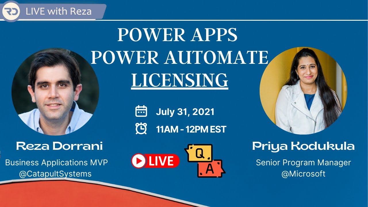 In this video, Priya Kodukula (Microsoft) and I discuss the PowerApps and Power Automate licensing options & answer licensing questions. We discuss various licensing plans and options available for Power Automate and Power Apps, license options based on scenarios, API call limits & more.