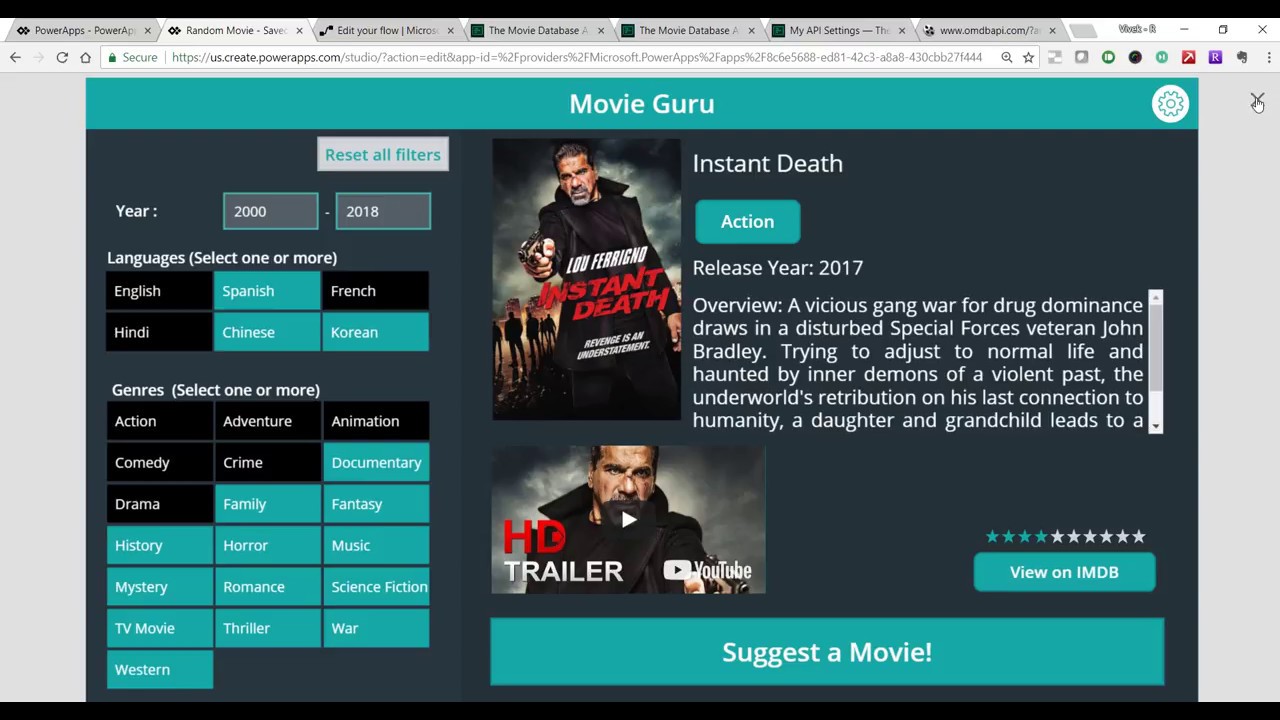 Create a Random Movie Recommender in PowerApps by using some open APIs for movies . Use Flow to return data to PowerApps. No custom connector required.
