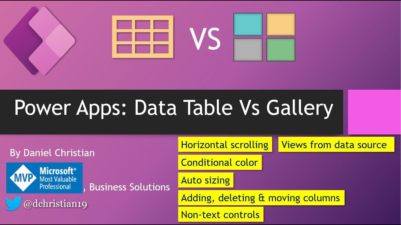 My new video on Power Apps: Data Table VS Gallery released this morning. This video walks you through the key differences between the two controls and ends with some of my recommendations.