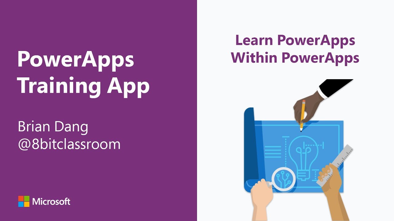 The PowerApps Training app is one of two samples that you can learn from out of the box. There's lessons on the basics, formulas, and galleries.